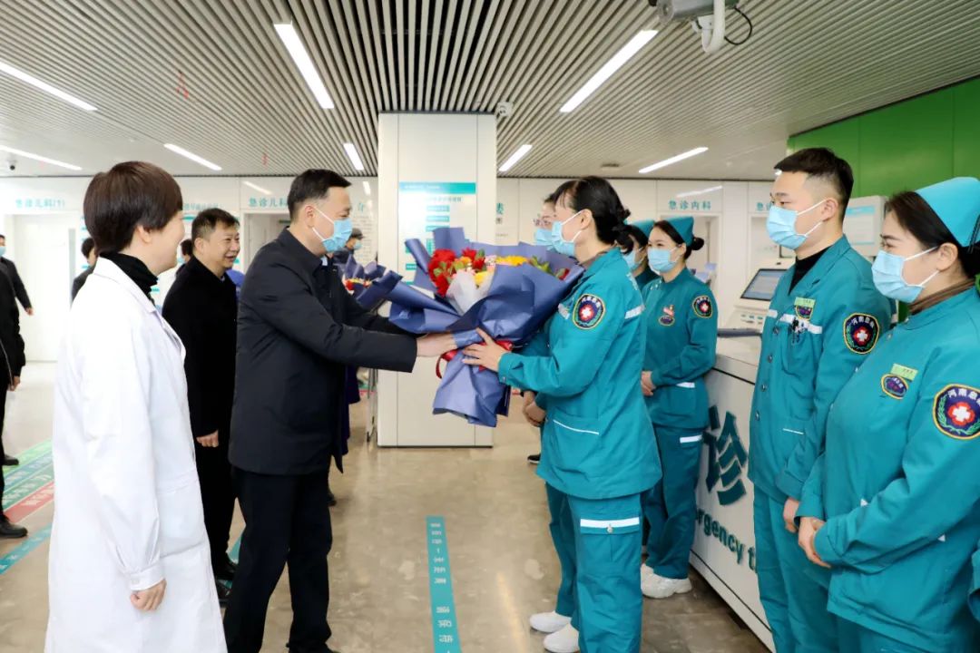 2月8日上午,新春佳節(jié)來臨之際,市衛(wèi)健委黨組成員、市紀委監(jiān)委派駐第二十一紀檢監(jiān)察組組長朱黎明一行到市二院看望慰問一線醫(yī)護人員,并送上節(jié)日的問候。黨委書記魏松、院長王瑾攜領(lǐng)導(dǎo)班子及相關(guān)職能部門負責人陪同慰問。