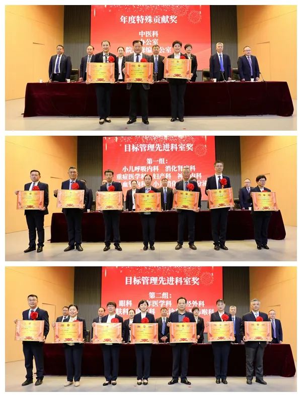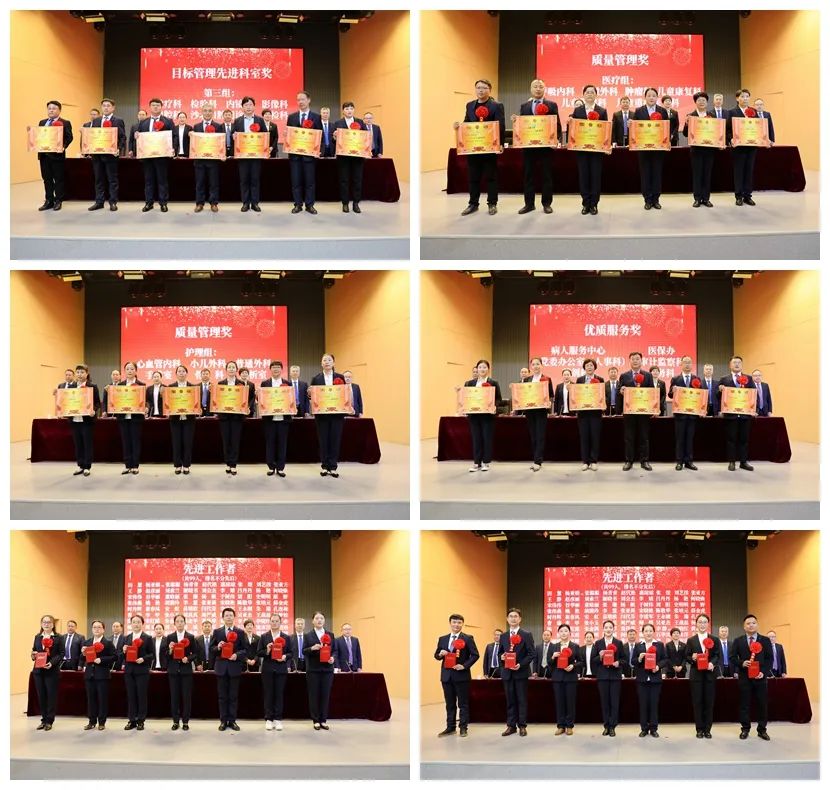 本次工作會是醫(yī)院開啟2024年高質(zhì)量發(fā)展新篇章、奮進三甲創(chuàng)建新征程關鍵節(jié)點上召開的鼓干勁、聚合力的重要會議。副院長謝彩玲、副院長郭長根、紀委書記孟德陽、副院長張曉東、工會主席李世學按照大會既定議程,依次宣讀了2023年度先進集體、先進工作者等表彰文件和表彰名單,對2023年度特殊貢獻獎、目標管理先進科室、質(zhì)量管理獎、優(yōu)質(zhì)服務獎、先進工作者進行了表彰。被表彰科室代表和先進個人代表披紅戴花,精神抖擻,從院領導手中接過象征榮譽和期望的獎牌、獎狀,熱烈的掌聲響徹學術報告廳,展現(xiàn)了二院人奮勇拼搏、干必出彩的良好精神風貌,為新的一年工作擂響了戰(zhàn)鼓,鼓足了干勁。