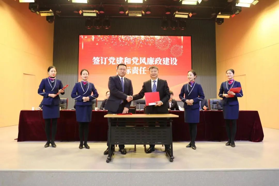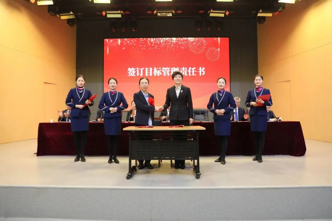 表彰結束后,黨委書記魏松與黨支部書記代表--兒科黨支部書記郭先鋒簽訂了2024年黨建和黨風廉政建設目標責任書,院長王瑾與科主任代表--婦產(chǎn)科主任井紅鴿簽訂了2024年科室目標管理責任書,醫(yī)院用兩類“軍令狀”轉(zhuǎn)化為新的一年工作的“指揮棒”和“動員令”,精準指引各科室新一年發(fā)展方向。