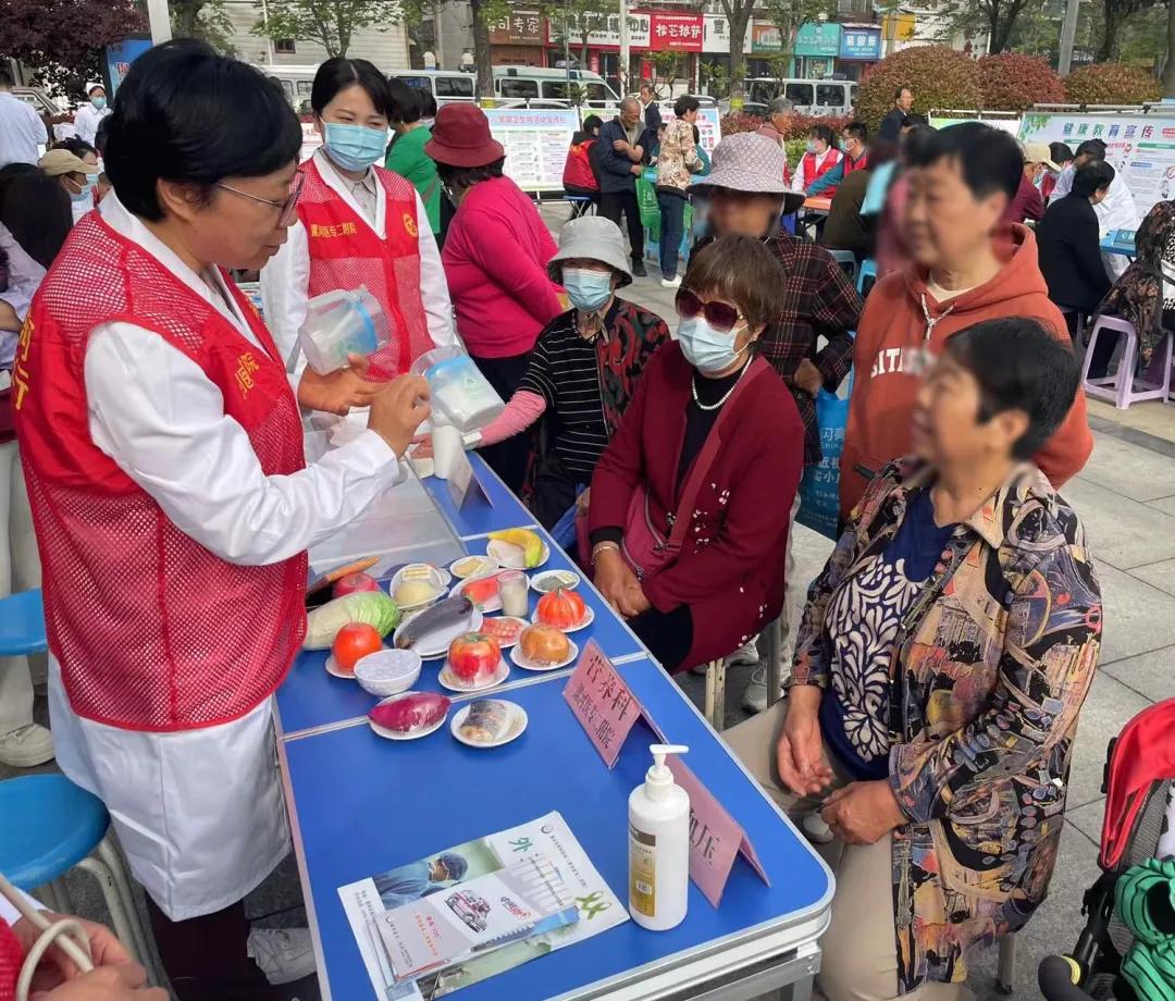 活動(dòng)現(xiàn)場(chǎng),醫(yī)護(hù)人員認(rèn)真為居民免費(fèi)測(cè)量血壓、身高、體重、健康咨詢(xún)、發(fā)放健康教育宣傳手冊(cè)等,并對(duì)問(wèn)診居民進(jìn)行答疑解惑、科普及宣傳衛(wèi)生防病知識(shí),增強(qiáng)公共衛(wèi)生意識(shí),提高居民防病能力。同時(shí),營(yíng)養(yǎng)科齊彤主任借助中國(guó)居民平衡膳食寶塔模型,生動(dòng)形象地為居民講解膳食金字塔的組成,結(jié)合自己的專(zhuān)業(yè)知識(shí),強(qiáng)調(diào)了在選擇健康膳食模式時(shí),大家應(yīng)該根據(jù)自己的身體狀況和營(yíng)養(yǎng)需求來(lái)合理安排自己的飲食,受到了居民們的一致好評(píng)。本次共義診200余人,免費(fèi)測(cè)血壓200余人。