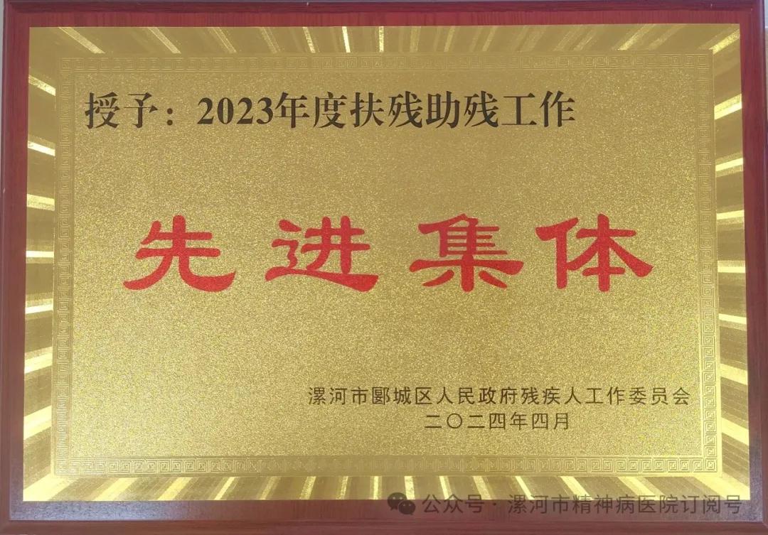 漯河市精神病醫(yī)院獲得“2023年度扶殘助殘工作先進(jìn)集體