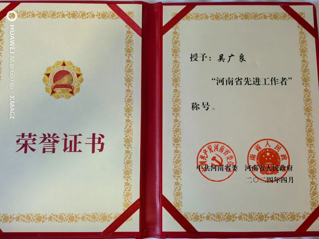漯河市骨科醫(yī)院副院長(zhǎng)吳廣良教授被授予“河南省先進(jìn)工作者”稱號(hào)