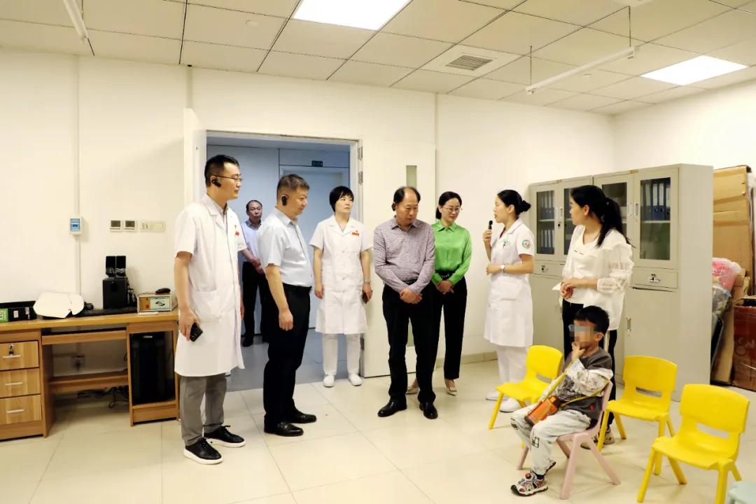 隨后,市殘聯(lián)黨組書記李國平一行實地查看了一樓大廳醫(yī)院概況展板、眼科門診、低視力康復(fù)中心、聽力測試室、兒童保健科、兒童康復(fù)科治療區(qū)、康復(fù)科治療區(qū)等地,聽取相關(guān)情況介紹,并與殘疾兒童和家長親切交流,詳細(xì)了解孩子們家庭狀況、康復(fù)療效等,對市二院開展殘疾兒童康復(fù)救助工作給予高度評價。