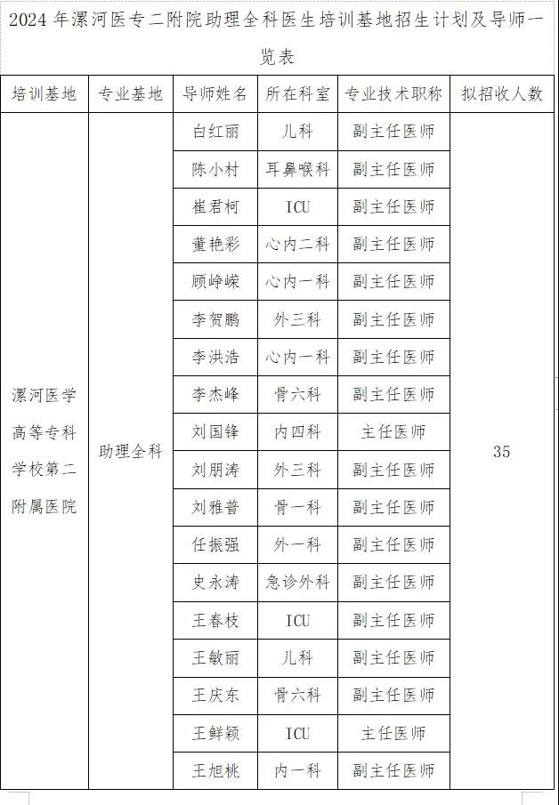 為深入貫徹落實(shí)《關(guān)于印發(fā)助理全科醫(yī)生培訓(xùn)實(shí)施意見(jiàn)(試行)的通知》(國(guó)衛(wèi)科教發(fā)〔2016〕14 號(hào)),根據(jù)《河南省衛(wèi)生健康委關(guān)于做好2024年助理全科醫(yī)生培訓(xùn)招收工作的通知》(豫衛(wèi)科教函〔2024〕19號(hào))要求,結(jié)合本院實(shí)際,現(xiàn)制定漯河醫(yī)學(xué)高等??茖W(xué)校第二附屬醫(yī)院2024年助理全科醫(yī)生培訓(xùn)招收方案如下: