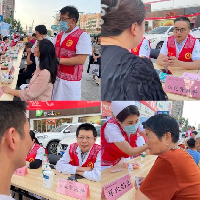 現(xiàn)場(chǎng)氣氛熱烈,前來咨詢和問診的社區(qū)居民及路人絡(luò)繹不絕,市二院放療科、康復(fù)科、老年醫(yī)學(xué)科、心內(nèi)科、皮膚科、眼科、消化腎病科等20余名黨員志愿者們?yōu)榫用駛兲峁┟赓M(fèi)測(cè)血壓、測(cè)血糖及健康咨詢;對(duì)他們提出的疑問進(jìn)行耐心解答,并詳細(xì)詢問其身體狀況和既往病史,科普相關(guān)知識(shí),積極引導(dǎo)大家科學(xué)就醫(yī)、合理用藥,宣傳倡導(dǎo)健康生活方式,增強(qiáng)自我保健意識(shí)。