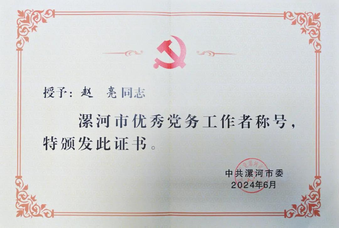 6月27日,全市“兩優(yōu)一先”表彰大會召開,市二院趙亮榮獲“漯河市優(yōu)秀黨務(wù)工作者”榮譽稱號。