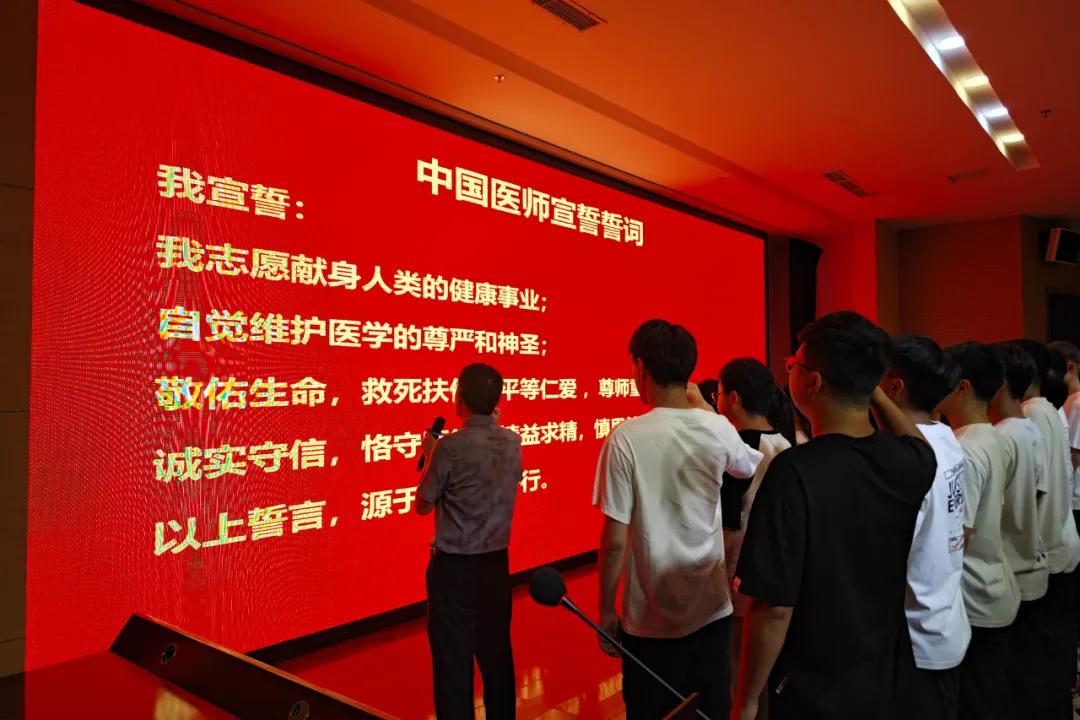 全科基地主任劉國鋒帶領(lǐng)全體學(xué)員進(jìn)行了莊嚴(yán)宣誓,《中國醫(yī)師誓言》的錚錚誓詞響徹會(huì)議室上空,回蕩在每個(gè)師生心間,師生在此經(jīng)歷了一次職業(yè)教育洗禮。