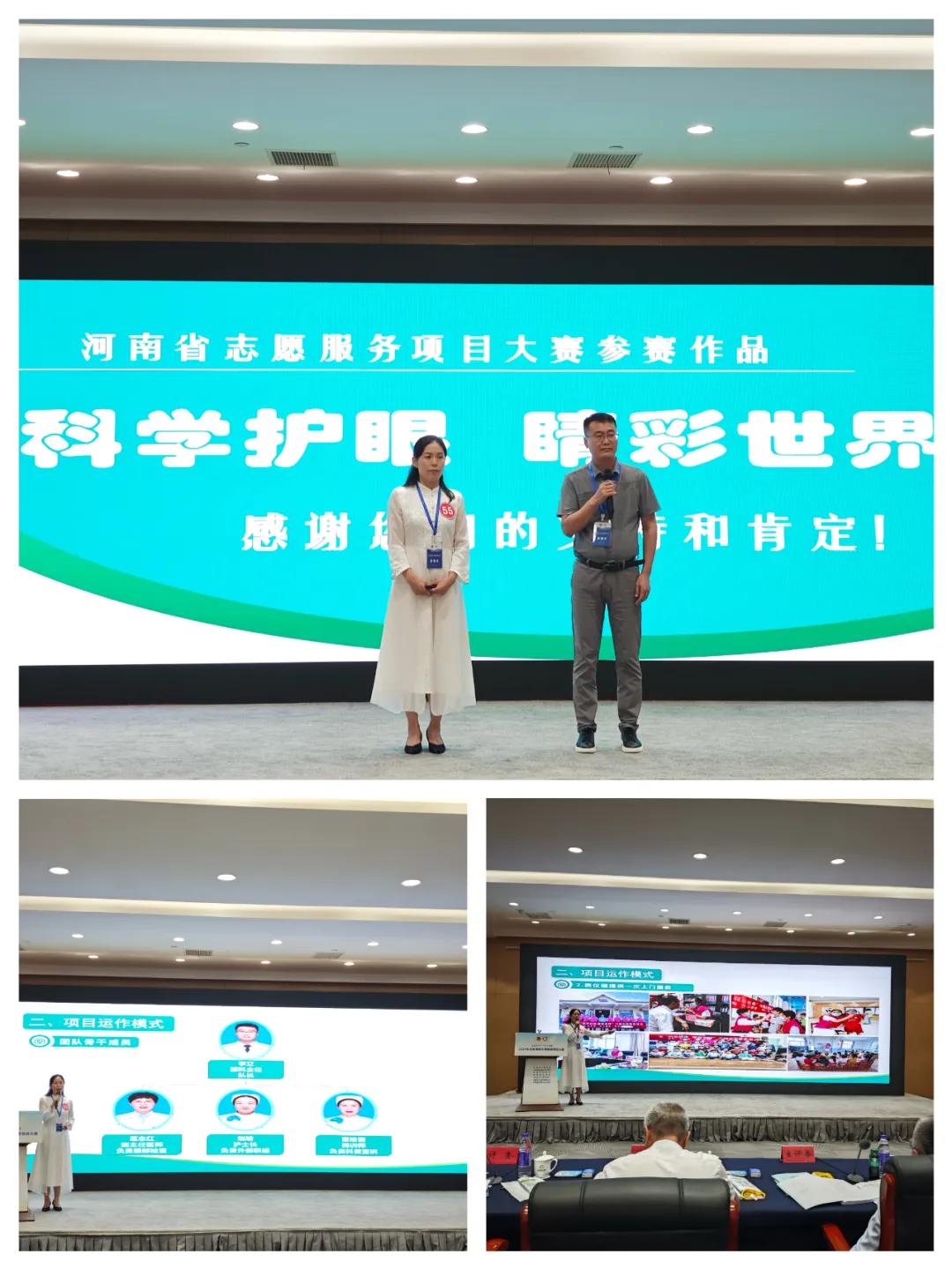 9月9日—10日,2024年河南青年志愿服務(wù)項(xiàng)目大賽決賽在鄭州舉行。代表漯河市參賽的市二院志愿服務(wù)項(xiàng)目《科學(xué)護(hù)眼,睛彩世界》在大賽中以?xún)?yōu)異成績(jī)斬獲金獎(jiǎng)。