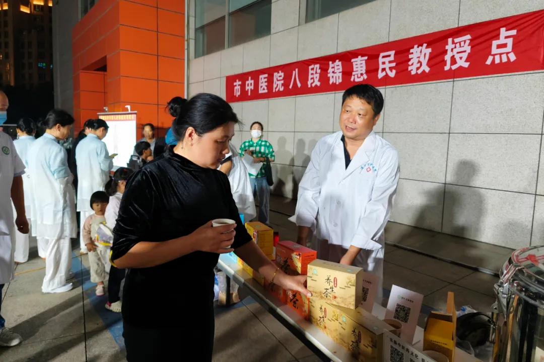 夜市現(xiàn)場還設(shè)置了中醫(yī)特色療法體驗區(qū),耳穴貼壓、穴位貼敷、火龍罐、艾灸、小兒推拿等中醫(yī)外治療法引來群眾體驗,讓大家切身感受中醫(yī)藥文化的獨特魅力。還有八段錦現(xiàn)場教學(xué),大爺大媽,小孩們參與跟練,健康身體動起來。