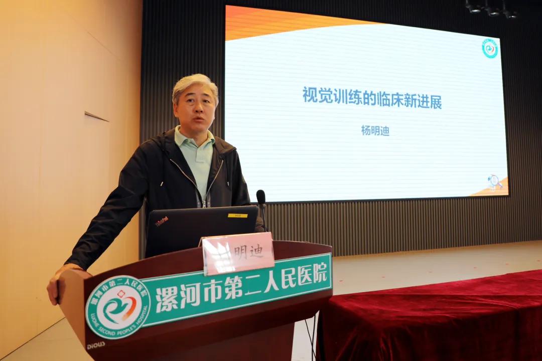 中國人民解放軍總醫(yī)院第六醫(yī)學中心楊明迪教授以《視覺訓練的臨床新進展》為題,從視覺訓練的定義、方法、適應癥和弱視訓練的新理念等方面進行專題報告。