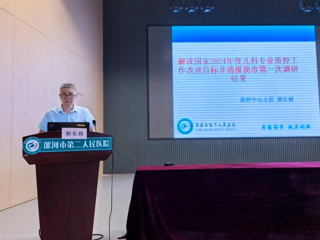 在質(zhì)控專題培訓(xùn)會上,副院長張曉東致辭并表示:作為漯河市兒科及小兒外科專業(yè)醫(yī)療質(zhì)量控制中心責(zé)任單位,我們始終高度重視質(zhì)控中心工作,將在省質(zhì)控中心的指導(dǎo)下,市衛(wèi)健委的領(lǐng)導(dǎo)下,加強質(zhì)控中心的建設(shè)和發(fā)展,充分發(fā)揮質(zhì)控中心作用,推動我市兒科醫(yī)療質(zhì)量的持續(xù)改進,實現(xiàn)一切為了患兒安全的初心使命。