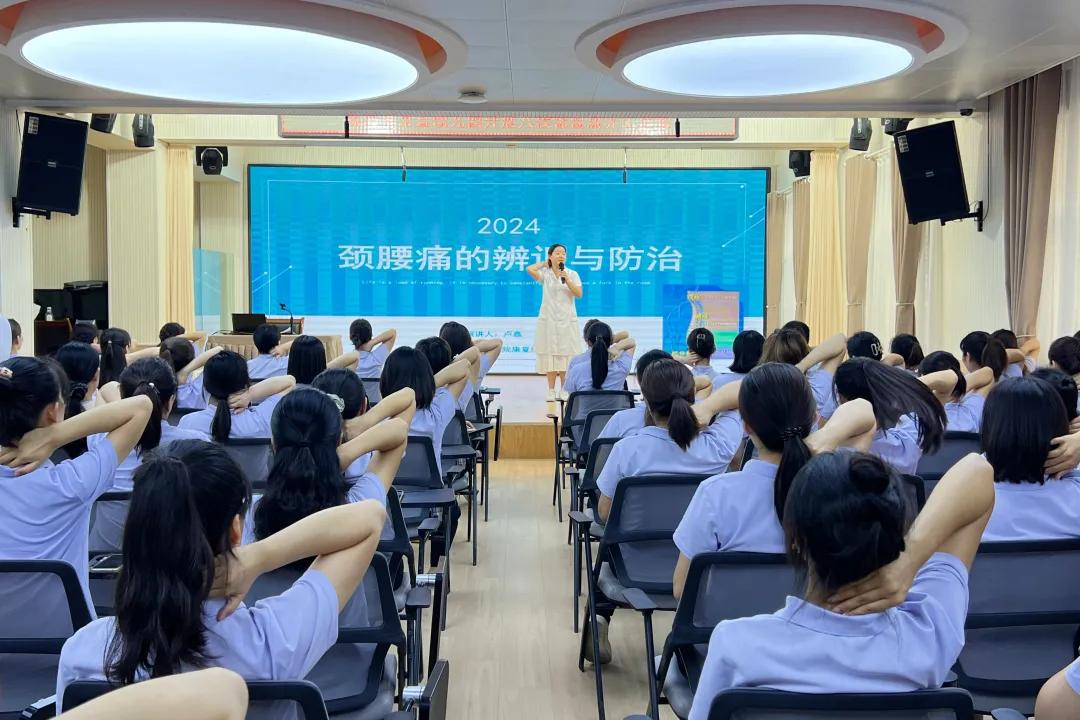 9月27日下午,漯河市中醫(yī)院醫(yī)聯(lián)體辦公室組織健康宣講團(tuán)走進(jìn)漯河市市直幼兒園,為在校教職工進(jìn)行一場(chǎng)主題為《頸肩腰腿疼的辨識(shí)與防治》以及八段錦培訓(xùn)的專題講座。