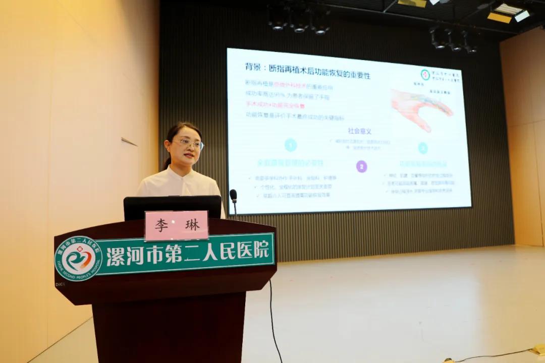 學(xué)術(shù)交流會(huì)上,市中心醫(yī)院創(chuàng)傷骨科外科護(hù)理規(guī)培基地秘書李琳講解了《全程康復(fù)護(hù)理管理模式在斷指再植患者術(shù)后功能恢復(fù)中的應(yīng)用》,分享醫(yī)院的全程康復(fù)護(hù)理管理模式,實(shí)現(xiàn)了從術(shù)前準(zhǔn)備到長期隨訪的全程管理,提高了康復(fù)治療的標(biāo)準(zhǔn)性和個(gè)體化水平。