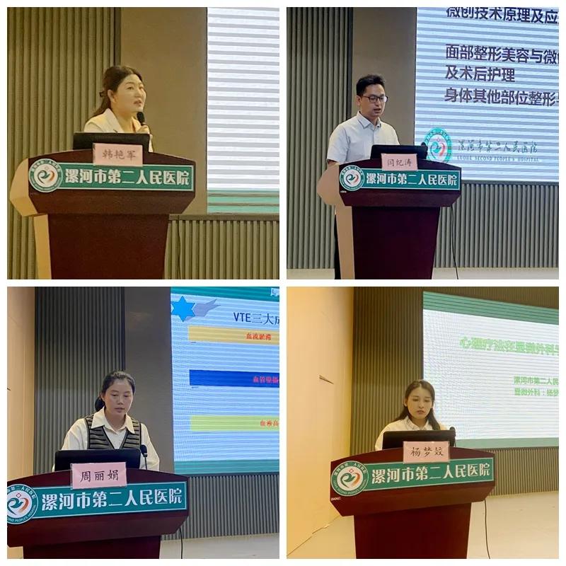 市二院顯微外科護(hù)士長韓艷軍講解了《顯微外科、手外科護(hù)理發(fā)展介紹,專業(yè)領(lǐng)域拓展視頻分享》,對顯微外科學(xué)發(fā)展史、科普離斷肢體的保存方法、術(shù)后護(hù)理的重要性等進(jìn)行了介紹。顯微外科副主任醫(yī)師閆記濤講解了《醫(yī)學(xué)整形與微創(chuàng)技術(shù)》,通過細(xì)化兩者的關(guān)系,使大家了解了顯微外科學(xué)的更多可能性。顯微外科主管護(hù)師周麗娟、楊夢姣分別講解了《VTE預(yù)防的健康教育》《心理療法在顯微外科學(xué)疾病中的應(yīng)用》,運(yùn)用實(shí)例、典故等強(qiáng)調(diào)VTE的預(yù)防及心理護(hù)理的重要性,展示了在臨床工作中如何運(yùn)用方法為患者帶來更優(yōu)質(zhì)的服務(wù)。