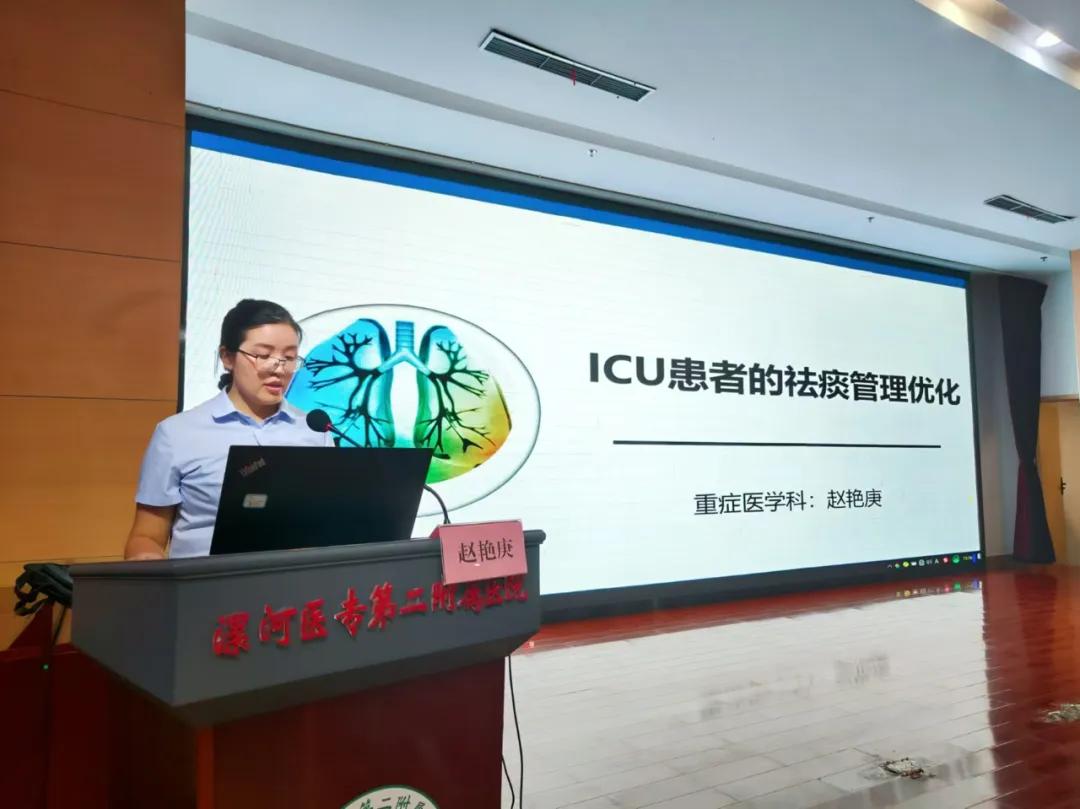 漯河市骨科醫(yī)院重癥醫(yī)學科護士長趙艷庚以《ICU患者的祛痰管理優(yōu)化》為課題。為大家詳細講解了ICU患者祛痰管理的重要性,痰液的產生機制、影響因素及祛痰管理實施辦法,引發(fā)對重癥肺炎患者呼吸道管理的更廣泛關注和重視,激勵醫(yī)護人員不斷學習和更新知識,提升專業(yè)技能,為患者提供更好的醫(yī)療服務。