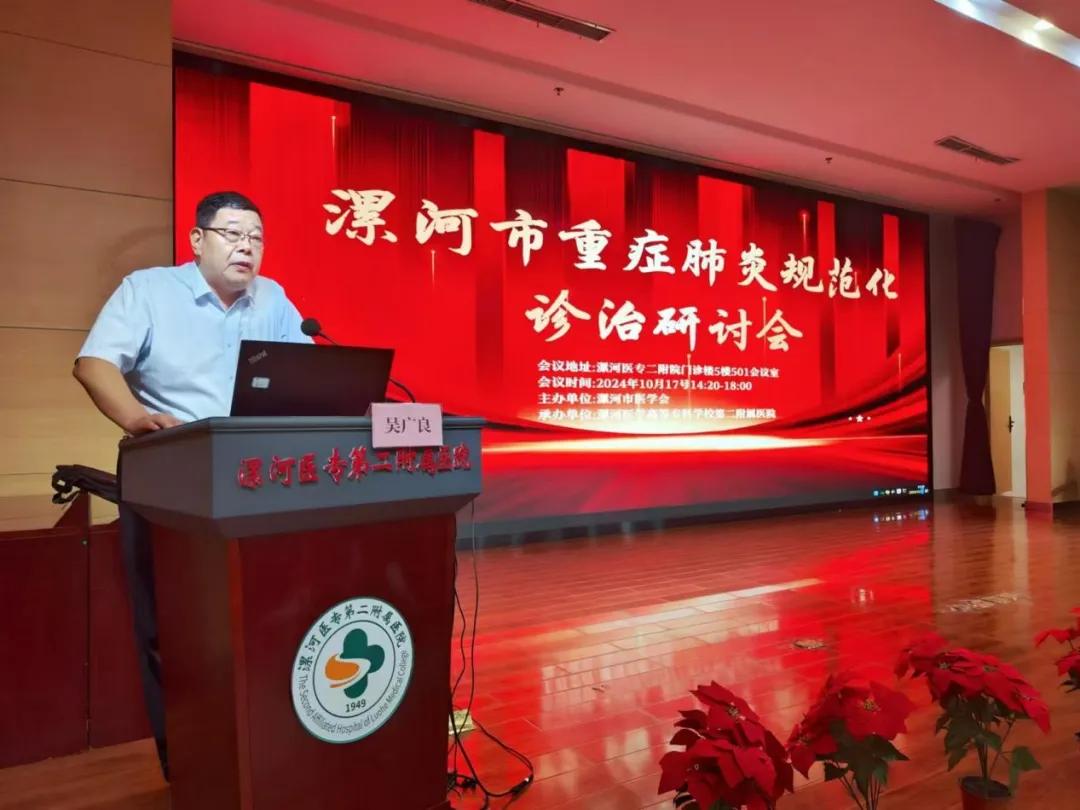 副院長吳廣良出席會議并致辭,他首先對與會的各位專家和老師表示熱烈的歡迎和衷心的感謝,他表示,重癥醫(yī)學科是發(fā)展迅猛,實力雄厚的重點科室,在提高人民群眾健康水平、保障危重患者安全等方面起著不可替代的作用。隨著醫(yī)療技術的飛速發(fā)展和患者需求的日益提高,重癥醫(yī)學面臨著新的挑戰(zhàn)和機遇。希望各位同仁以此次會議為契機,匯聚各方智慧,共同探討和分享重癥肺炎的新理念、新技術、新方法,以期推動重癥醫(yī)學的進步和創(chuàng)新。
