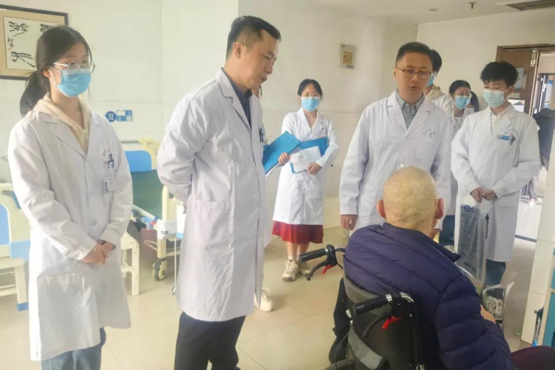 在業(yè)務(wù)查房中,胡彥輝教授通過查閱病歷資料、查體、詢問病史、輔檢報(bào)告等,為主管醫(yī)生講解了其對(duì)一些疑難病的診療思路、病情觀察與治療要點(diǎn),并指導(dǎo)制定了疑難病患的診療方案。