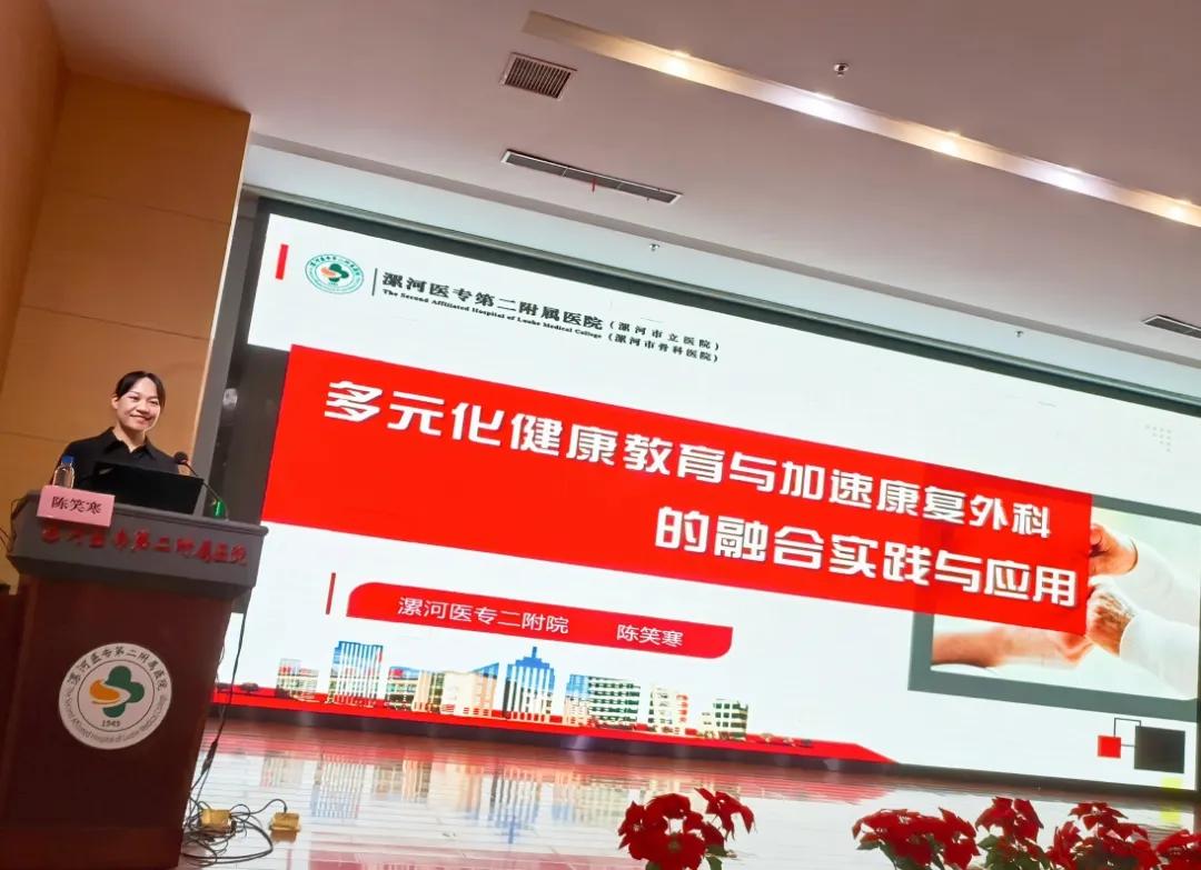 漯河醫(yī)專二附院泌尿肛腸外科護(hù)士長(zhǎng)陳笑寒為大家?guī)砹恕督】到逃c加速康復(fù)外科(ERAS)的融合實(shí)踐與應(yīng)用》。她詳細(xì)介紹了健康教育在ERAS中的重要作用,以及如何通過有效的健康教育,提升患者的自我管理能力,促進(jìn)術(shù)后快速康復(fù)。