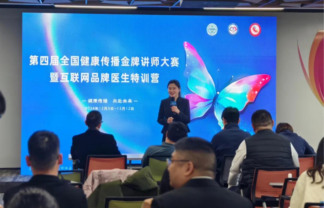12月5日,第四屆健康傳播金牌講師大賽暨互聯(lián)網(wǎng)品牌醫(yī)生特訓(xùn)營(yíng)在河北雄安健康中國(guó)傳播大廈正式拉開(kāi)帷幕,周會(huì)芳同來(lái)自全國(guó)各地五大賽區(qū)的100位業(yè)內(nèi)知名健康傳播達(dá)人、網(wǎng)絡(luò)大V共同角逐。此次大賽,由院士領(lǐng)隊(duì),博導(dǎo)指導(dǎo),設(shè)有個(gè)人風(fēng)采展示、情景劇展演、醫(yī)學(xué)人文演講、1分鐘即興科普、視頻拍攝剪輯、12小時(shí)極限拍攝網(wǎng)劇、5分鐘授課能力展示等8個(gè)環(huán)節(jié),她一步步突破自我,最終躋身全國(guó)前六十強(qiáng)。