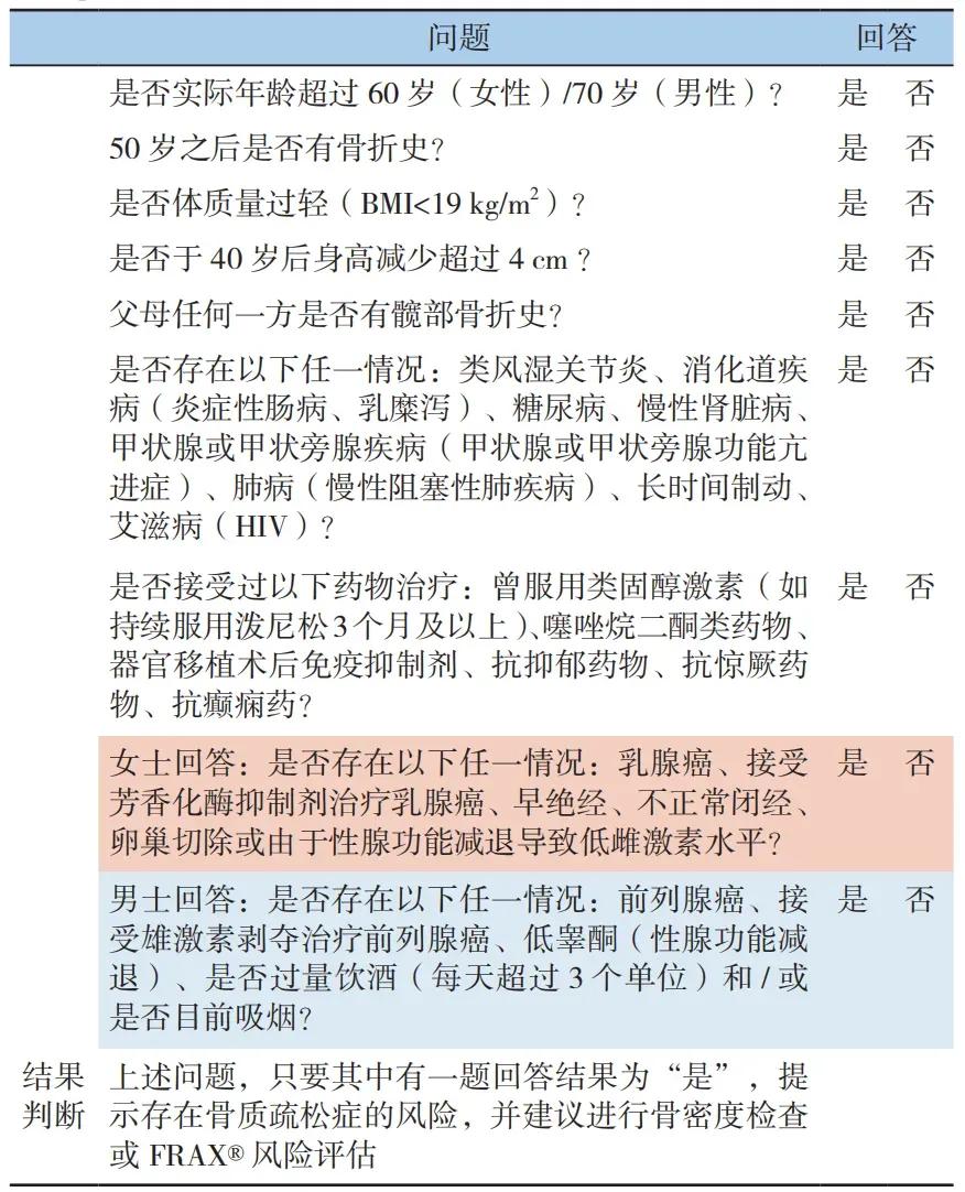 骨質(zhì)疏松是由多種原因造成的骨密度和骨質(zhì)量下降,骨微結(jié)構(gòu)破壞,骨脆性增加,容易發(fā)生骨折的全身性骨病。隨著年齡增長,骨質(zhì)疏松的問題越來越多,但很多人是因?yàn)楣钦廴メt(yī)院就診,經(jīng)過醫(yī)生檢查后才得知自己是因?yàn)楣琴|(zhì)疏松才導(dǎo)致的骨折。其實(shí),骨質(zhì)疏松是有一些風(fēng)險因素的,了解這些風(fēng)險因素可以早期檢查、早期治療,預(yù)防相關(guān)并發(fā)癥的發(fā)生。