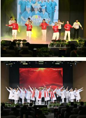 院領(lǐng)導(dǎo)班子也全員參與,登上舞臺(tái)表演了歌曲、詩朗誦、太極拳、相聲、三句半等節(jié)目,他們?nèi)橥度氲谋硌?,展現(xiàn)出了十足的活力,拉近了與職工之間的距離,讓大家感受到了醫(yī)院這個(gè)大家庭的溫暖與團(tuán)結(jié),他們的登場(chǎng)也瞬間點(diǎn)燃了現(xiàn)場(chǎng)的氣氛,將聯(lián)歡會(huì)的氛圍推向了高潮。