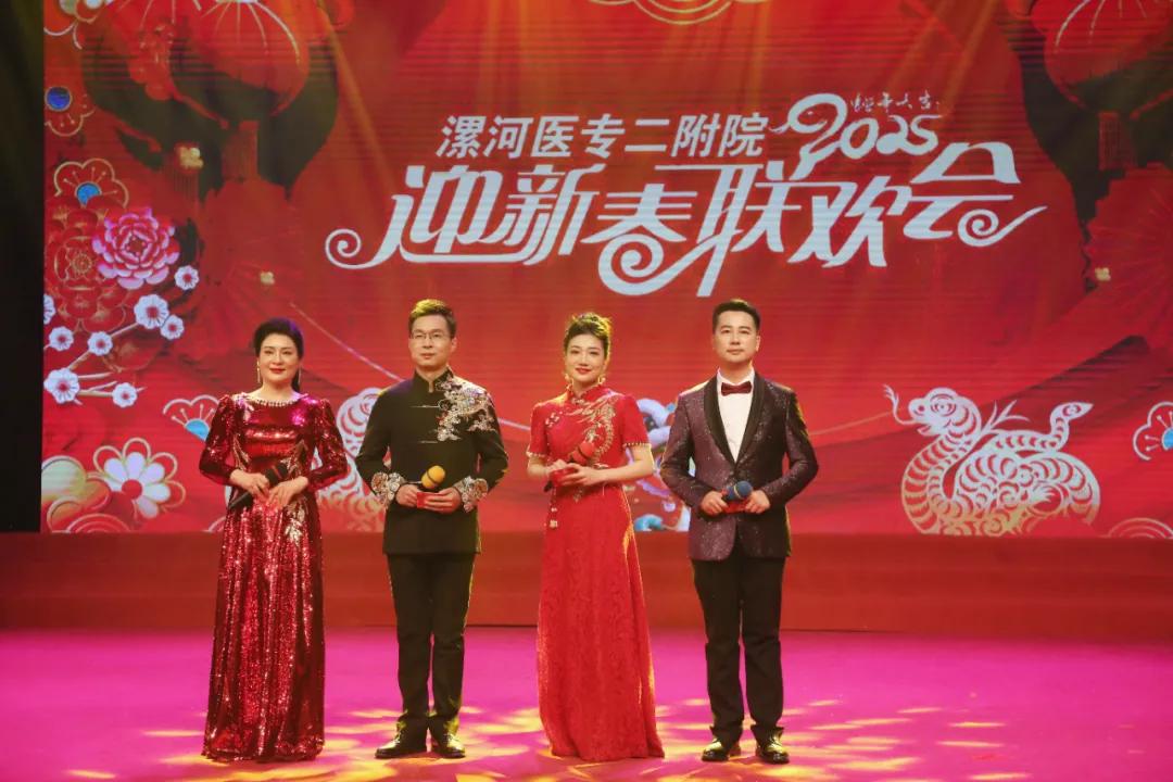 為慶祝漯河醫(yī)專二附院(漯河市骨科醫(yī)院、漯河市立醫(yī)院)建院七十五周年,1月21日,漯河醫(yī)專二附院2025年迎新春聯(lián)歡會在漯河市科教文化藝術(shù)中心大劇院隆重舉行。漯河醫(yī)學(xué)高等??茖W(xué)校校長張祎捷,市衛(wèi)生健康委副主任于宏,市醫(yī)保局副局長于懷江,漯河醫(yī)專黨委副書記邊曉峰,市科協(xié)副主席臧明濤,市總工會四級調(diào)研員李敏,漯河醫(yī)專紀(jì)委書記王蕾,漯河醫(yī)專副校長張福華、馬永超,漯河醫(yī)專二附院黨委書記柴運(yùn)洪,漯河醫(yī)專二附院院長王齊超,漯河醫(yī)專黨辦主任楊曉宇,漯河醫(yī)專行政辦主任申耀強(qiáng),漯河醫(yī)專團(tuán)委書記周沛,市衛(wèi)健委醫(yī)政科科長胡艷麗,市總工會文教衛(wèi)工會主任谷賀衛(wèi),郾城區(qū)龍塔街道辦事處主任李瑩,郾城區(qū)巴山路居委會書記王梅芝,郾城區(qū)伊坪小學(xué)校長徐偉濤等出席。