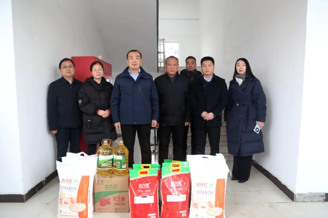 在郾城區(qū)淞江街道小趙村,院黨委書記柴運(yùn)洪、院長(zhǎng)王齊超一行將米、面、油等慰問品送到困難群眾家中,為村民們送來新春的問候。柴書記、王院長(zhǎng)詳細(xì)了解他們的家庭收入、子女教育等情況,并鼓勵(lì)他們保持積極心態(tài),注意保重身體,早日走出困境。