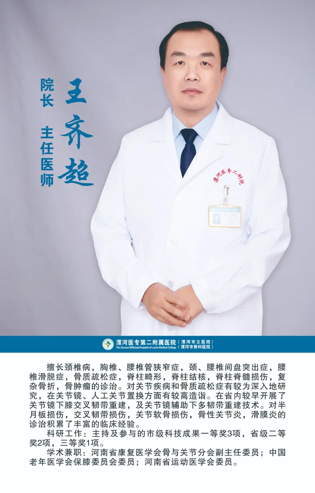 骨醫(yī)名家 | 漯河醫(yī)專二附院(漯河市骨科醫(yī)院)院長(zhǎng)、骨科專家 — 王齊超