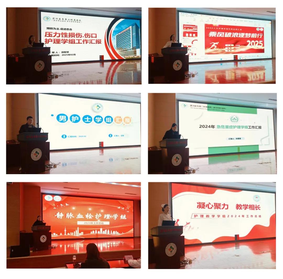 隨后,10個(gè)護(hù)理學(xué)組依次上臺(tái)進(jìn)行匯報(bào)。各學(xué)組代表圍繞2024年度工作目標(biāo)、取得成果、工作臺(tái)賬、存在問題以及2025年工作計(jì)劃等方面進(jìn)行了詳細(xì)闡述。在過去的一年中,各學(xué)組緊密圍繞醫(yī)院三甲創(chuàng)建工作,聚焦??谱o(hù)理發(fā)展,積極開展了一系列卓有成效的工作。在匯報(bào)過程中,各學(xué)組也坦誠(chéng)地指出了工作中存在的問題和挑戰(zhàn)。