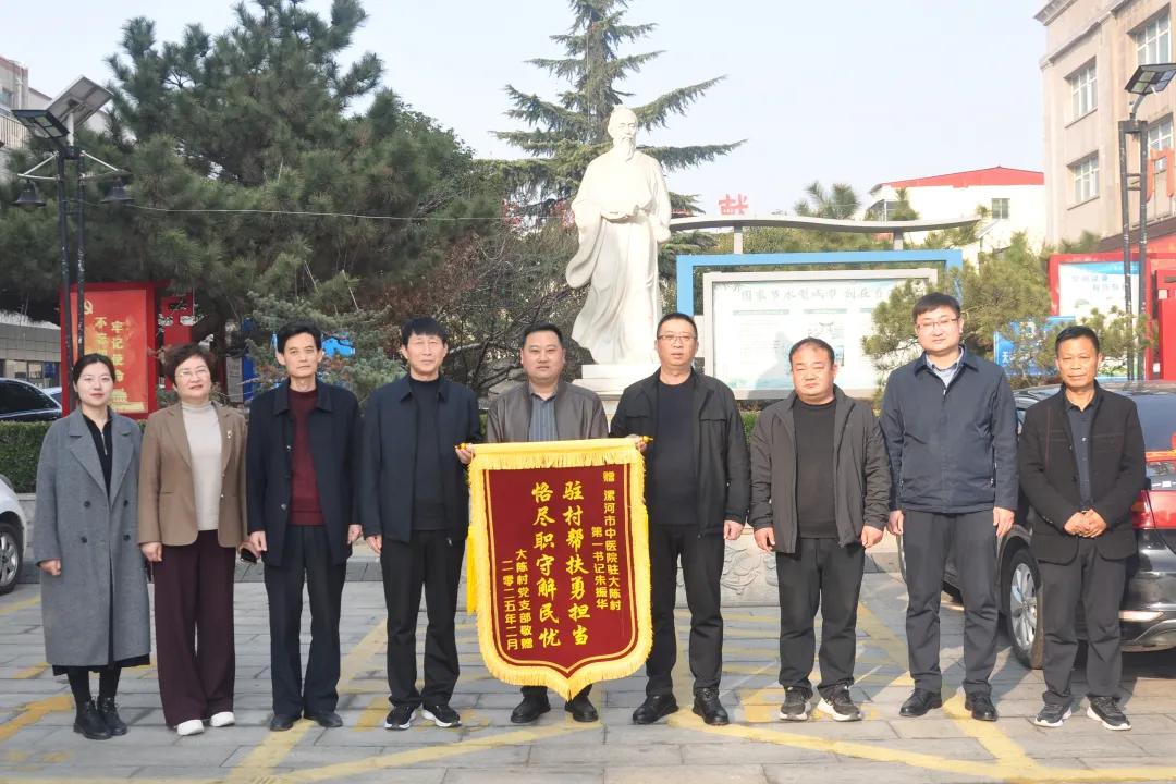 2月28日上午,源匯區(qū)大劉鎮(zhèn)黨委書記郭嘉琦帶領(lǐng)鎮(zhèn)干部同大陳村“兩委”干部一行來到漯河市中醫(yī)院,將“深情幫扶辦實事,鄉(xiāng)村振興譜新篇 ”和“駐村幫扶勇?lián)?dāng),恪盡職守解民憂”兩面錦旗分別送到漯河市中醫(yī)院黨委副書記、副院長張文吉和醫(yī)院派駐大陳村“第一”書記朱振華的手中,以此感謝漯河市中醫(yī)院兩年多來對大劉鎮(zhèn)大陳村脫貧攻堅以及鄉(xiāng)村振興工作的傾情幫扶和大力支持,院黨委副書記、副院長張文吉帶領(lǐng)相關(guān)科室負(fù)責(zé)人接待并召開座談會。