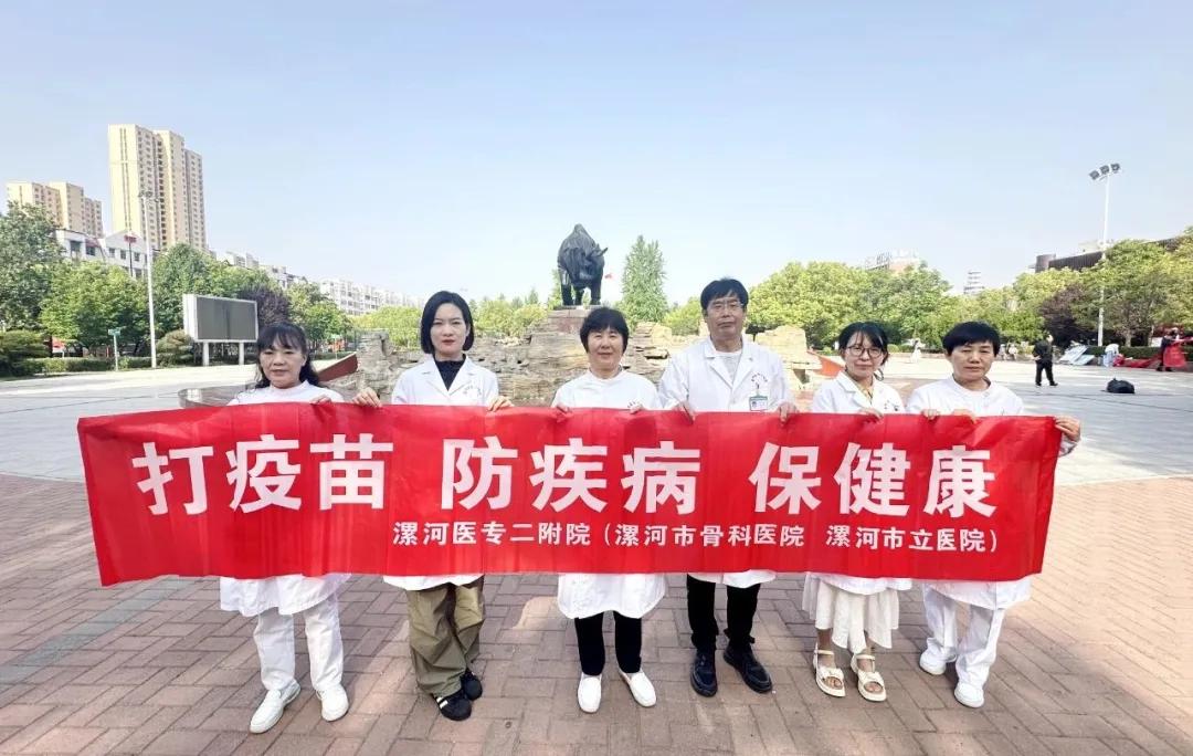 2025 年 4 月 25 日是第 39 個(gè)全國(guó)兒童預(yù)防接種日。為進(jìn)一步做好預(yù)防接種宣傳科普工作,提高全社會(huì)參與預(yù)防接種工作的積極性和主動(dòng)性,“全國(guó)兒童預(yù)防接種日”當(dāng)天,漯河醫(yī)專二附院(漯河市骨科醫(yī)院,漯河市立醫(yī)院)積極組織醫(yī)療志愿者團(tuán)隊(duì),到郾城區(qū)黃河廣場(chǎng)開展兒童預(yù)防接種知識(shí)宣傳義診活動(dòng)。