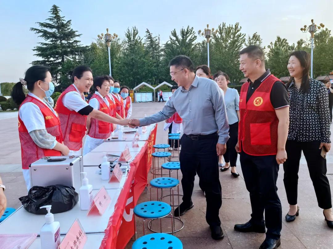 5月9日下午,以“春暖沙澧 攜手同行”為主題的漯河市第三十五次全國(guó)助殘日活動(dòng)在紅楓廣場(chǎng)啟動(dòng)。市二院黨委書記魏松,黨委副書記、院長(zhǎng)胡海英,副院長(zhǎng)劉橋帶領(lǐng)專家志愿者團(tuán)隊(duì)深度參與此次活動(dòng),為人民群眾筑起健康防線。