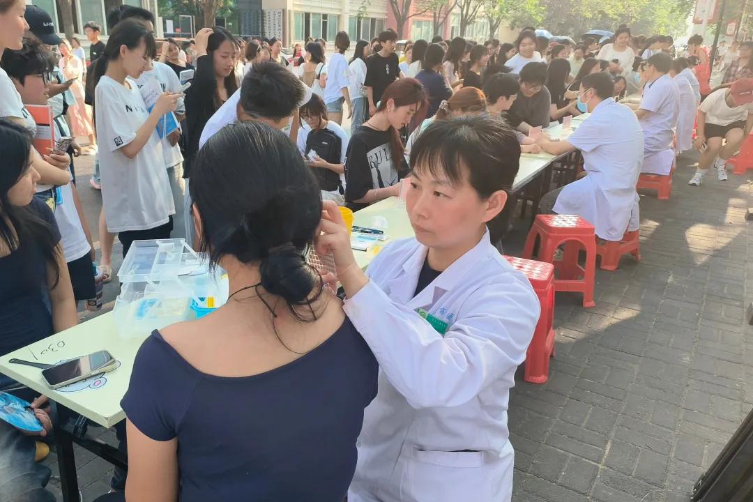 現(xiàn)場(chǎng)特別設(shè)置了中醫(yī)特色治療體驗(yàn)區(qū),針灸推拿科唐鵬程醫(yī)生還現(xiàn)場(chǎng)展示了針灸和中醫(yī)正骨特色療法,通過(guò)精準(zhǔn)的手法為師生們緩解了肩頸疼痛、腰肌勞損等常見(jiàn)職業(yè)病癥狀;中醫(yī)骨干護(hù)士宋锫镠通過(guò)中醫(yī)耳穴壓豆、刮痧等特色療法,讓師生們親身體驗(yàn)到了中醫(yī)的神奇魅力?;顒?dòng)過(guò)程中還發(fā)放了健康知識(shí)宣傳頁(yè),向師生們普及了常見(jiàn)病、多發(fā)病的預(yù)防、健康養(yǎng)生知識(shí)。