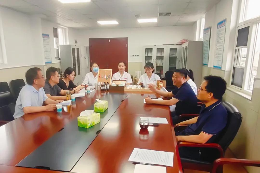 為深入挖掘中醫(yī)藥產(chǎn)業(yè)發(fā)展?jié)摿?,助推漯河中醫(yī)藥事業(yè)高質(zhì)量發(fā)展,6月20日上午,漯河市科學技術(shù)局黨組書記、局長效國強帶領(lǐng)中原食品實驗室行政副主任、實驗室服務中心主任高鵬,中原食品實驗室綜合行政部部長,實驗室服務中心綜合辦公室副主任張艷一行三人來院調(diào)研。漯河市中醫(yī)院紀委書記劉家棟,藥學部主任陳朝鋒以及中藥衍生品研發(fā)團隊和相關(guān)醫(yī)療專家等人員參加會議。