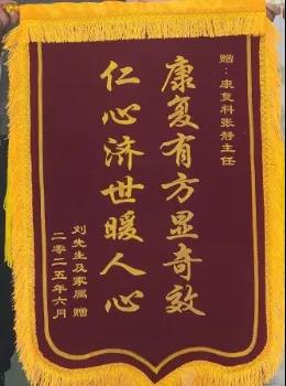 與此同時(shí),科室還收到一面印有“康復(fù)有方顯奇效,仁心濟(jì)世暖人心”字樣的錦旗。在患病期間,患者飽受腰痛、下肢麻木等癥狀折磨,嚴(yán)重影響日常生活。來(lái)到康復(fù)科后,科室負(fù)責(zé)人張靜帶領(lǐng)科室團(tuán)隊(duì)根據(jù)其病情制定個(gè)性化針灸治療方案,通過精準(zhǔn)取穴、規(guī)范施針,配合專業(yè)康復(fù)指導(dǎo),逐步減輕患者病痛,助其恢復(fù)正常生活?;颊邽楸砀屑ぃ刭?zèng)錦旗,錦旗上的話語(yǔ)是對(duì)科室治療效果的高度認(rèn)可。