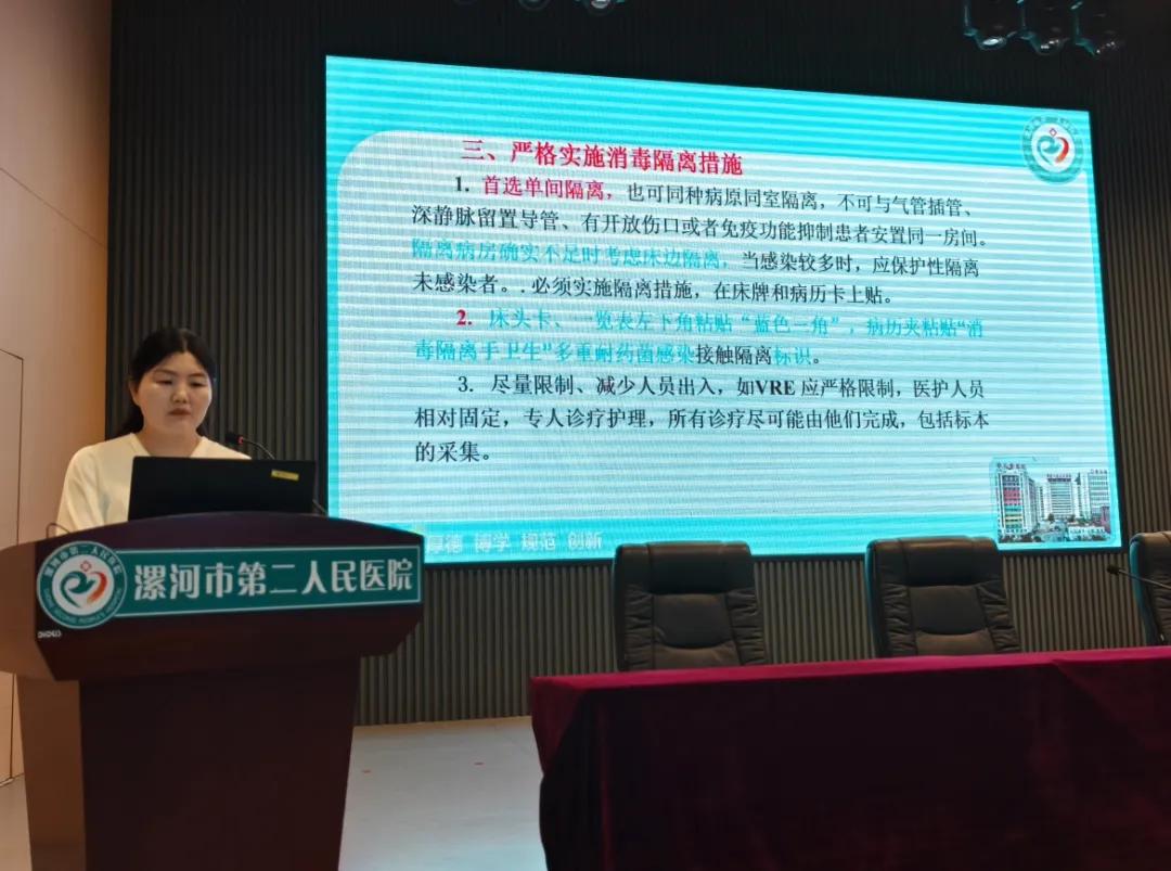 隨后,感控辦副主任韓艷軍從強化醫(yī)務人員感控理念出發(fā),詳細講解了感染基本知識、日常感控措施落實要求、手衛(wèi)生管理、醫(yī)療廢物規(guī)范化管理、多重耐藥菌感染防控、醫(yī)院感染暴發(fā)處置及職業(yè)安全防護等方面知識,結合國家、省、市質控指標數據進行了通報。