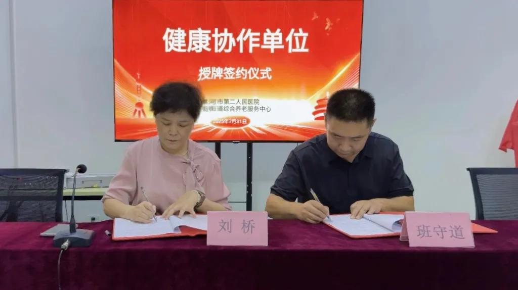 為應(yīng)對人口老齡化浪潮,滿足老年人多元化健康需求,7月31日上午,市二院與馬路街街道綜合養(yǎng)老服務(wù)中心舉行“健康協(xié)作單位”授牌儀式,市二院副院長劉橋、醫(yī)聯(lián)體辦公室副主任張靜出席儀式。