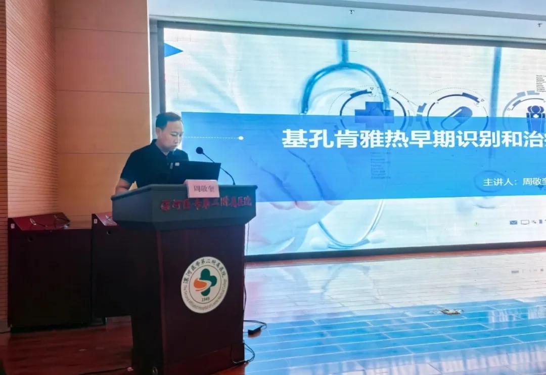 本次培訓(xùn)邀請了呼吸內(nèi)科周敬奎主任進(jìn)行授課,內(nèi)容涵蓋基孔肯雅熱和登革熱的流行病學(xué)特征、臨床表現(xiàn)、診斷標(biāo)準(zhǔn)、治療原則以及防控措施等方面。周主任結(jié)合實(shí)際案例,對(duì)兩種疾病的鑒別診斷進(jìn)行了詳細(xì)講解。