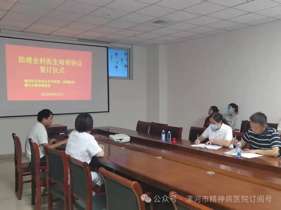 8月21日,漯河醫(yī)學(xué)高等專科學(xué)校第二附屬醫(yī)院劉國鋒書記及相關(guān)負(fù)責(zé)人帶領(lǐng)30余名助理全科醫(yī)生到漯河市精神病醫(yī)院開展參觀學(xué)習(xí)活動(dòng)?,F(xiàn)場簽訂助理全科醫(yī)生培訓(xùn)合作協(xié)議,共同搭建理論與實(shí)踐相結(jié)合的學(xué)習(xí)平臺(tái)。