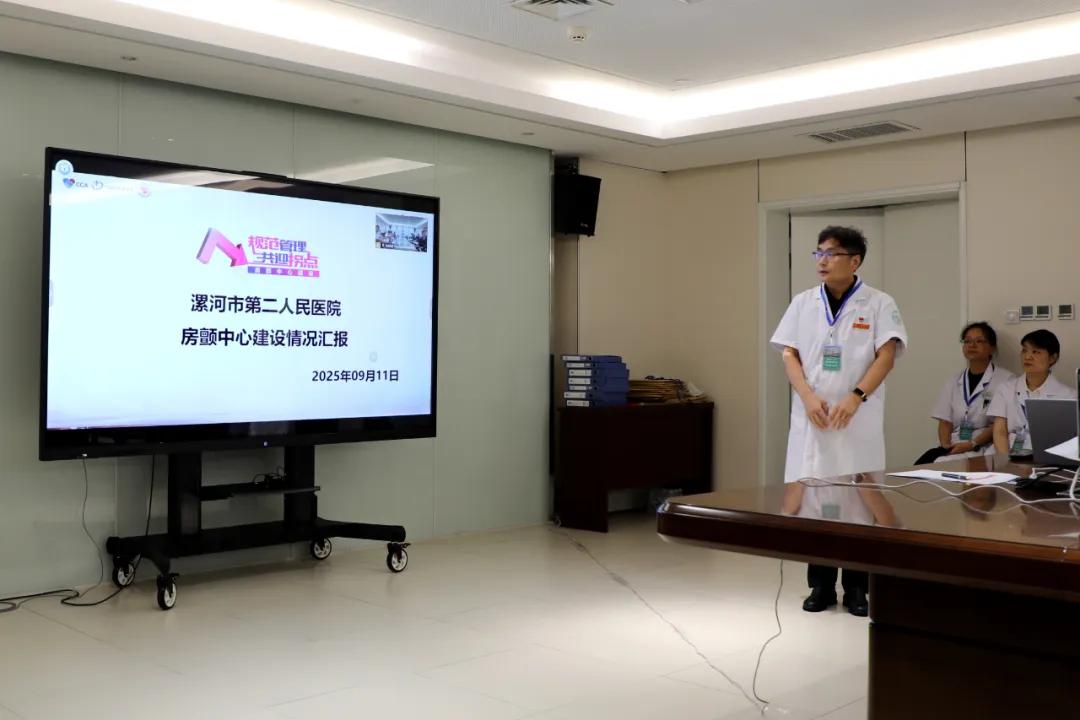 現(xiàn)場核查階段,市二院房顫中心負(fù)責(zé)人、心血管內(nèi)科病區(qū)主任李慧新從醫(yī)院基本情況、心血管內(nèi)科概況、房顫中心建設(shè)概況以及對房顫中心建設(shè)項目的建議四個方面進(jìn)行了匯報。