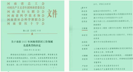 為表彰先進(jìn)、樹立榜樣,進(jìn)一步激勵(lì)廣大婦女奮進(jìn)新征程、建功新時(shí)代,為奮力譜寫中原大地推進(jìn)中國(guó)式現(xiàn)代化新篇章作出新的更大貢獻(xiàn),省總工會(huì)、團(tuán)省委、省婦聯(lián)、省科協(xié)、省社科聯(lián)、省紅十字會(huì)決定,授予60個(gè)單位、200名同志河南省三八紅旗獎(jiǎng)。漯河醫(yī)專二附院(漯河市骨科醫(yī)院、漯河市立醫(yī)院)重癥醫(yī)學(xué)科主任王鮮穎榮獲“河南省三八紅旗獎(jiǎng)”先進(jìn)個(gè)人稱號(hào)。