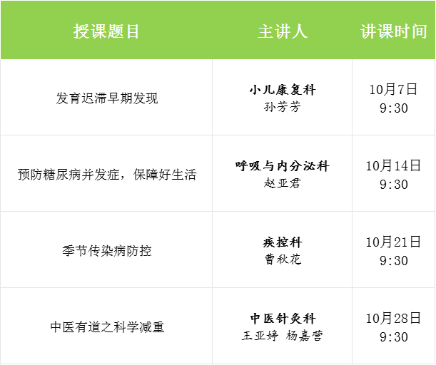 【科普講座】漯河市二院門診健康科普周周講2025年10月講座安排