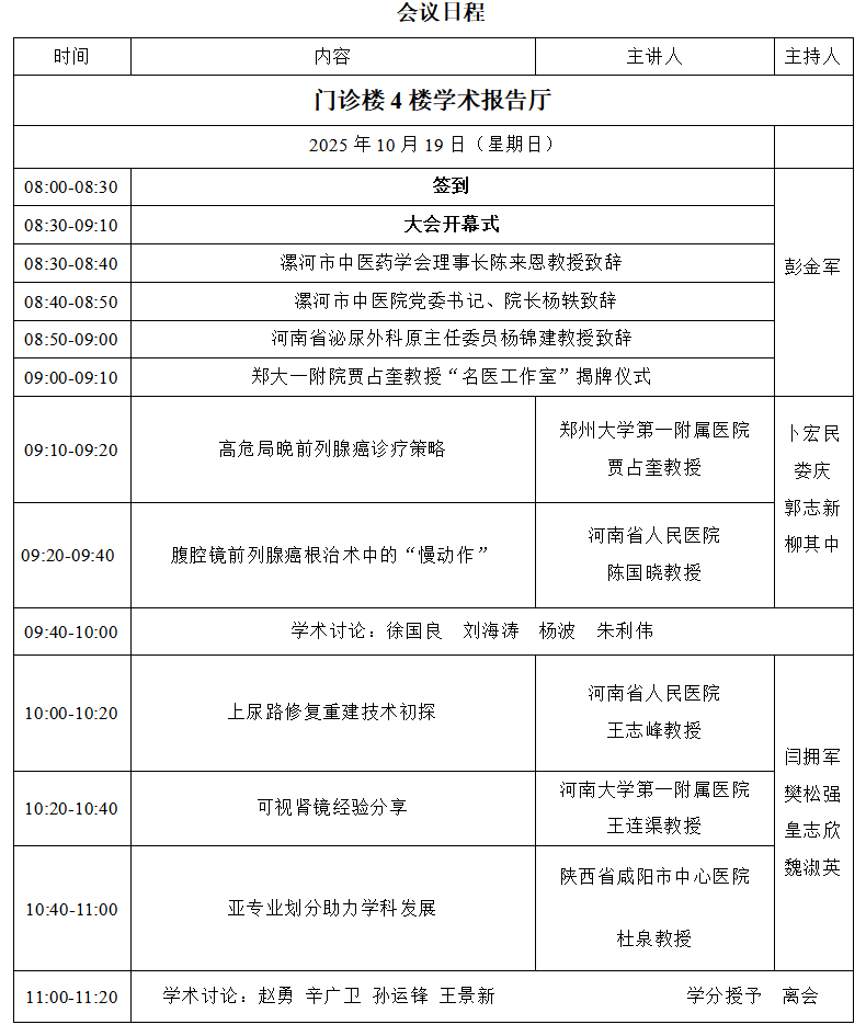 【學(xué)術(shù)預(yù)告】10月19日,漯河市中醫(yī)藥學(xué)會(huì)中西醫(yī)結(jié)合泌尿外科2025年學(xué)術(shù)年會(huì)暨泌尿系結(jié)石中西醫(yī)結(jié)合治療新進(jìn)展研討班