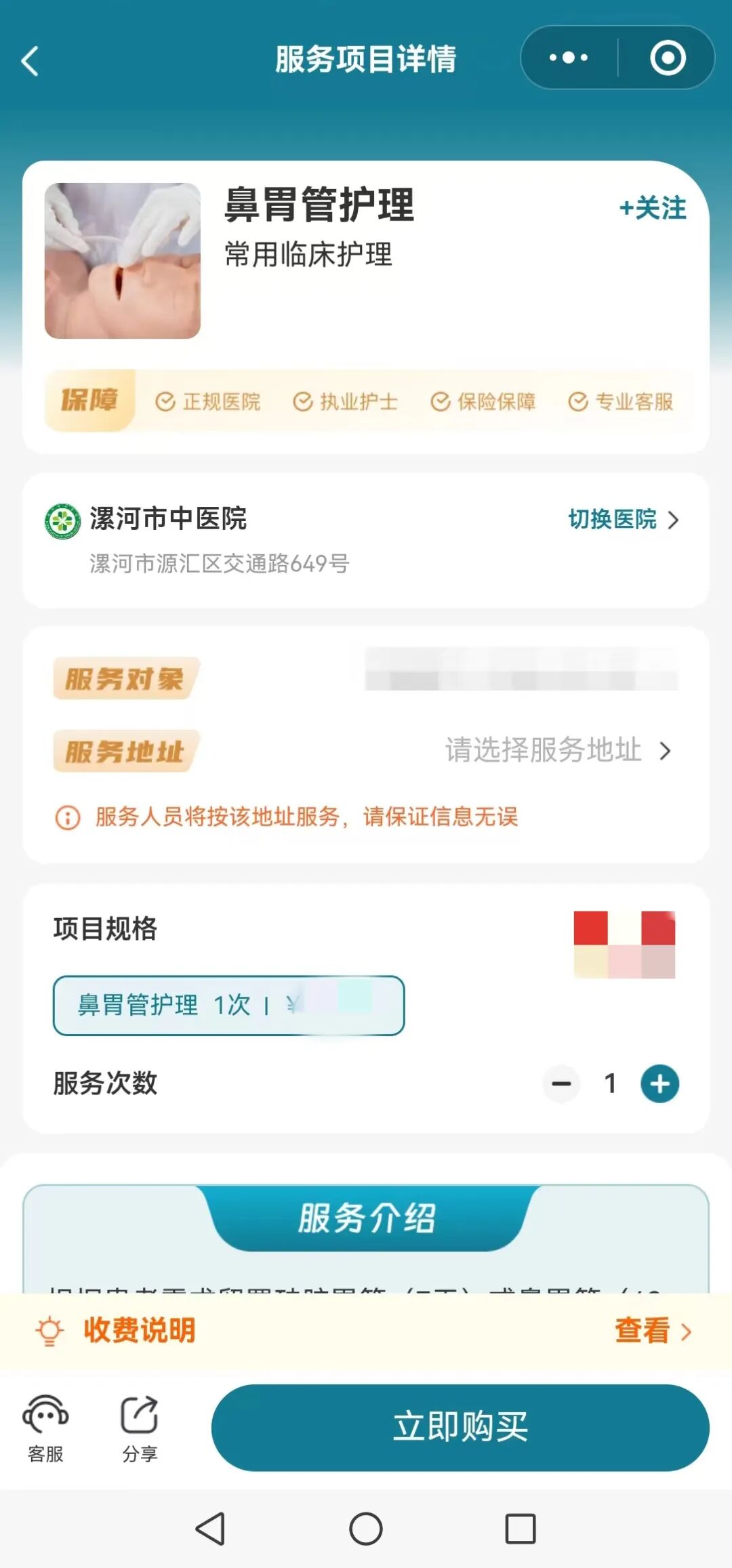填寫信息: 選擇項(xiàng)目規(guī)格,填寫“服務(wù)對(duì)象”信息與“服務(wù)地址”(首次使用需實(shí)名認(rèn)證)