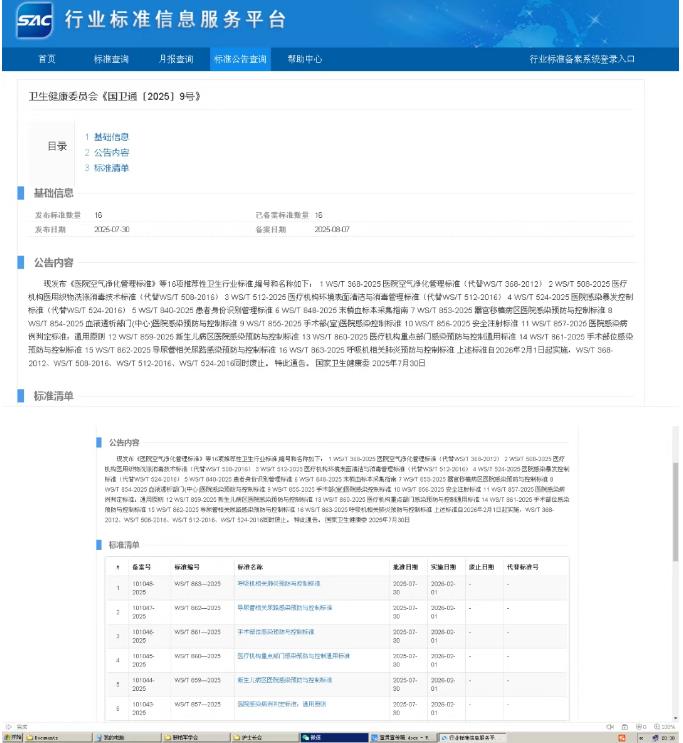 國(guó)家衛(wèi)生健康委員會(huì)近日正式發(fā)布《國(guó)衛(wèi)通〔2025〕9號(hào)》公告,公布并備案了16項(xiàng)推薦性衛(wèi)生行業(yè)標(biāo)準(zhǔn),其中14項(xiàng)重點(diǎn)圍繞醫(yī)院感染控制領(lǐng)域。該批標(biāo)準(zhǔn)將于2026年2月1日起全面實(shí)施,同時(shí),4項(xiàng)修訂前的舊版標(biāo)準(zhǔn)同步廢止。新標(biāo)準(zhǔn)的發(fā)布實(shí)施,對(duì)進(jìn)一步規(guī)范醫(yī)院感染管理流程、提升醫(yī)療質(zhì)量安全水平具有重要意義。