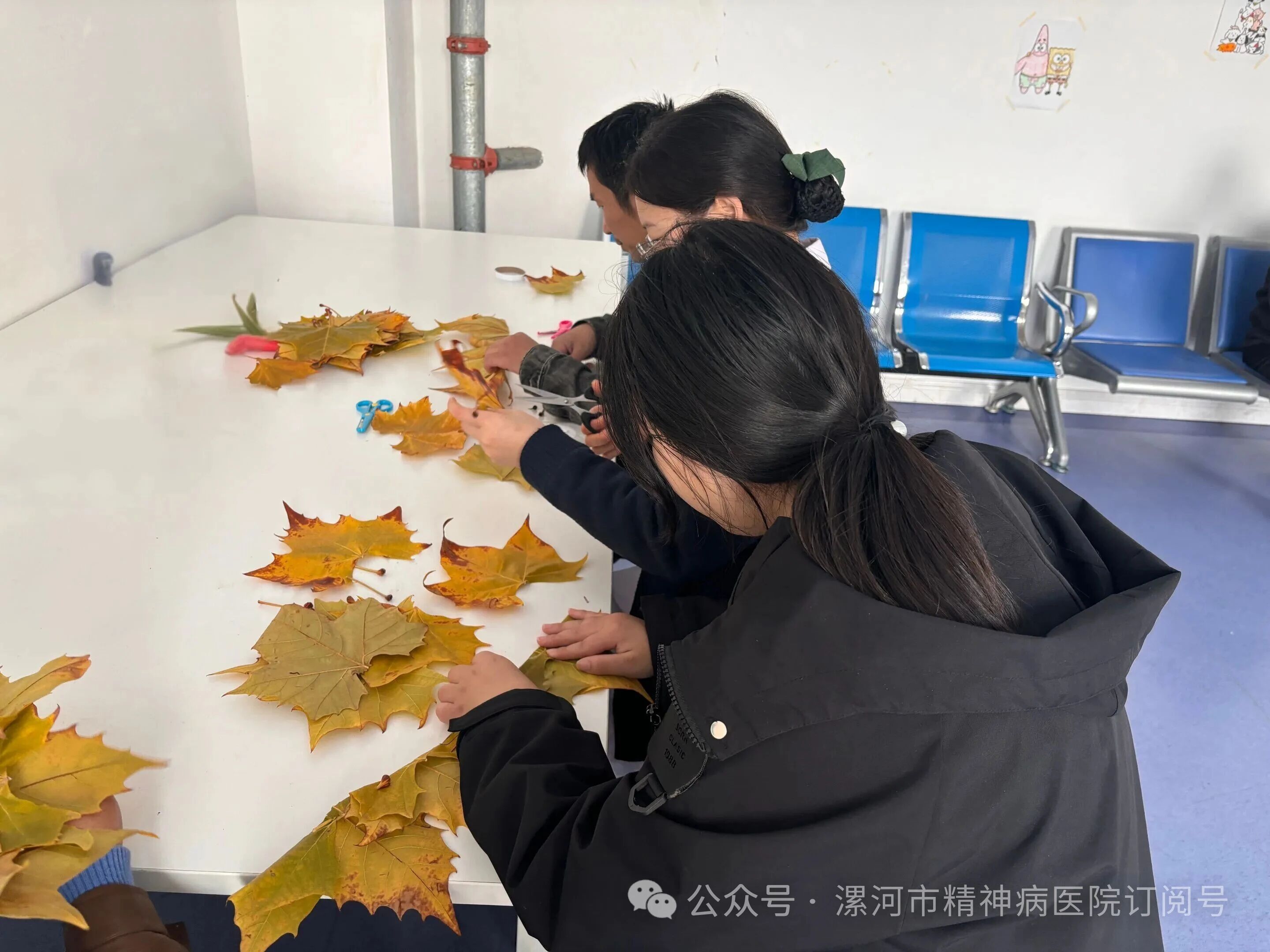 11月10日,漯河市精神病醫(yī)院心身醫(yī)學(xué)科的候診室里,落葉成了特殊的“療愈材料”。