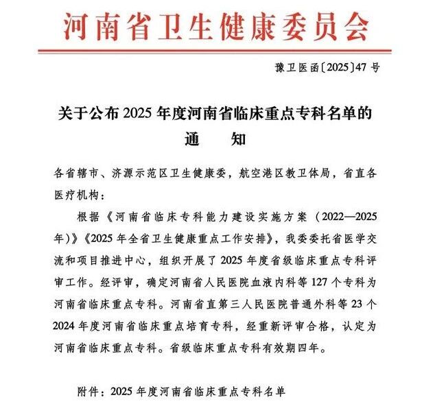 此次兩個(gè)??瞥晒Λ@評省級臨床重點(diǎn)???,既印證了漯河醫(yī)專二附院在專科建設(shè)上的厚積薄發(fā),更為區(qū)域醫(yī)療發(fā)展注入新動(dòng)能。醫(yī)院將繼續(xù)堅(jiān)持從人民群眾健康需求出發(fā),進(jìn)一步提高臨床??乒芾矸?wù)能力和專業(yè)影響力,打造更多的省級、市級重點(diǎn)???,完善全方位、全周期的醫(yī)療服務(wù),不斷增強(qiáng)人民群眾的健康幸福感、獲得感和滿意度,持續(xù)為醫(yī)院高質(zhì)量發(fā)展注入強(qiáng)大動(dòng)力,為漯河及周邊百姓提供更全面的健康保障。(盧 闖 劉 旭 袁錦鈺)