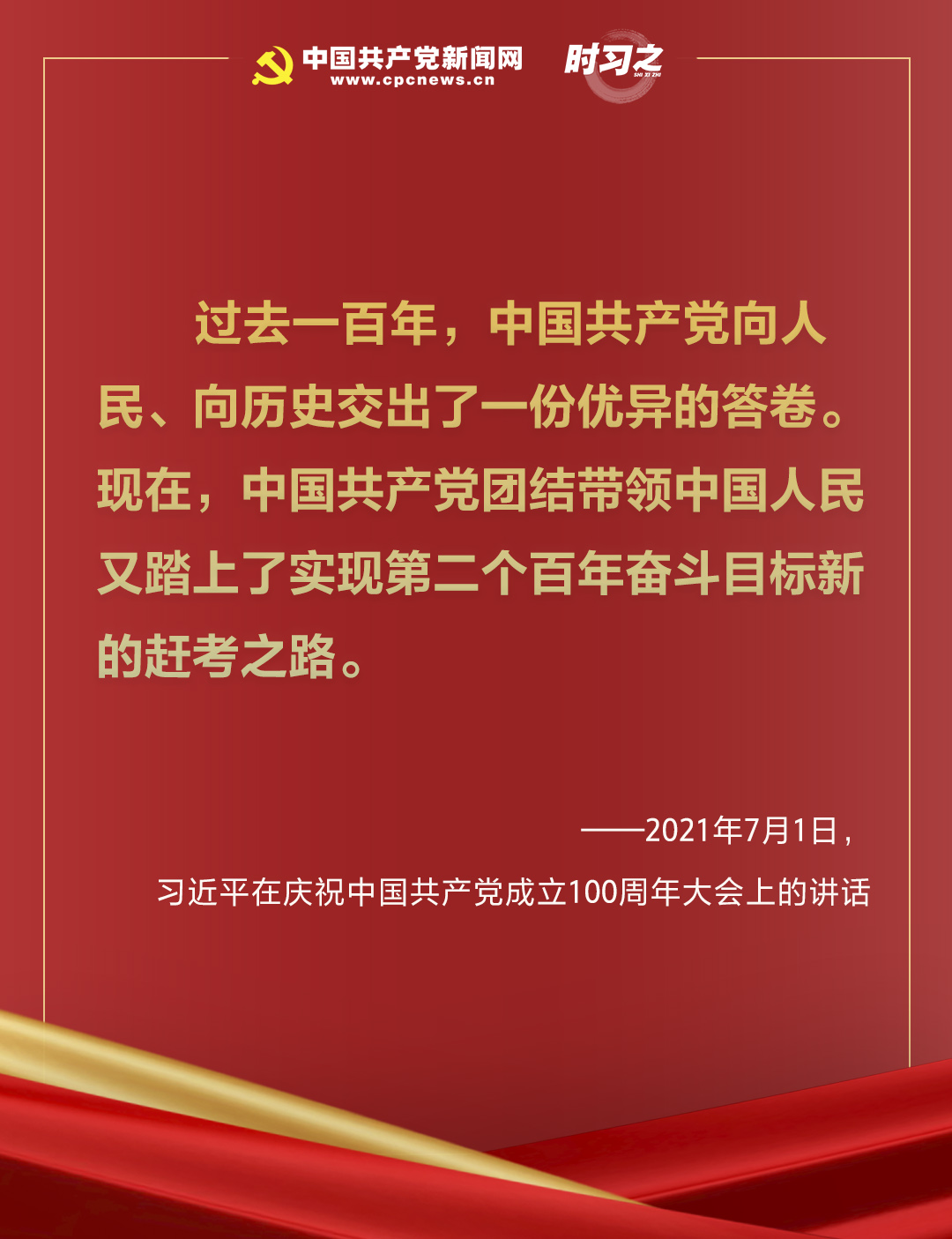 2021年7月,建黨百年的輝煌時(shí)刻,習(xí)近平總書(shū)記在慶祝中國(guó)共產(chǎn)黨成立100周年大會(huì)上莊嚴(yán)宣告,“現(xiàn)在,中國(guó)共產(chǎn)黨團(tuán)結(jié)帶領(lǐng)中國(guó)人民又踏上了實(shí)現(xiàn)第二個(gè)百年奮斗目標(biāo)新的趕考之路。”
