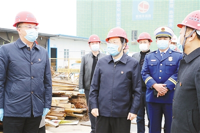 3月9日,市委書(shū)記蒿慧杰在市民之家建筑工地檢查安全生產(chǎn)工作。記者 王慶建 攝