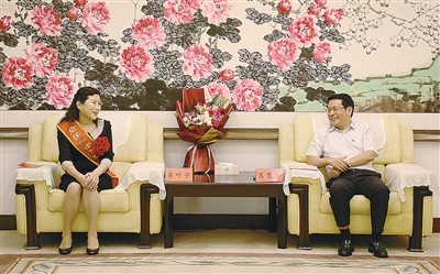 9月9日,市委書記蒿慧杰親切接見“全國抗擊新冠肺炎疫情先進個人”、市中心醫(yī)院重癥醫(yī)學科主任李葉寧。本報記者 張 佩 攝
